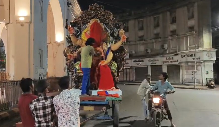વડોદરા : ગણેશોત્સવને ઘડીઓ બાકી છે હાલ વડોદરામાં પોલીસના લોંખડી બંદોબસ્ત વચ્ચે આગમનયાત્રા ધામધૂમથી નીકળી રહી છે.