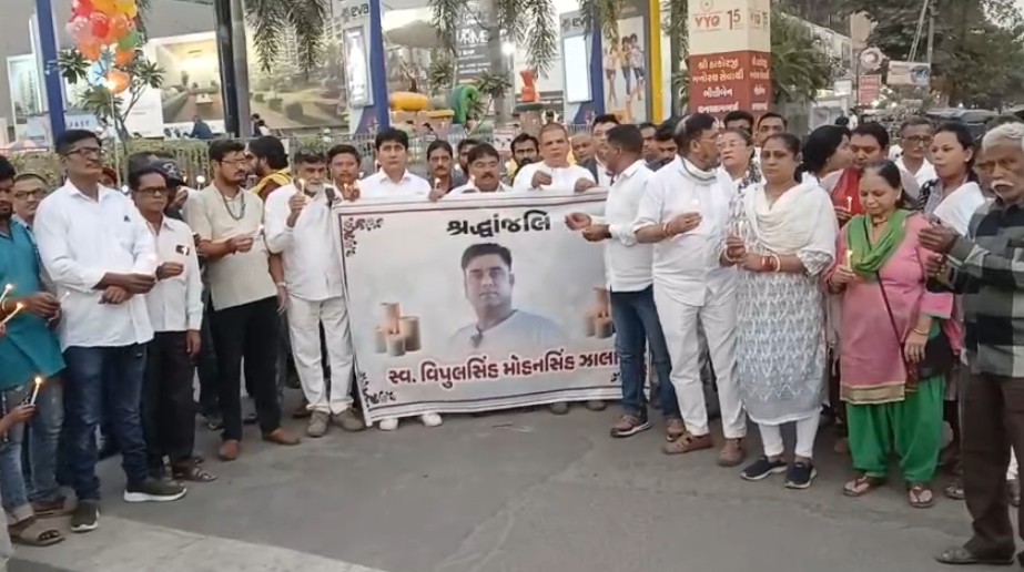ગટરમાં પડી જવાથી વિપુલ સિંહ ઝાલાનું મોત થતા શહેરમાં રોષની લાગણી ફેલાઈ છે.આ ઘટનાને લઈને આજે દરબાર ચોકડીથી માંજલપુર પાણીની ટાંકી સુધી કેન્ડલ માર્ચનું આયોજન કરવામાં આવ્યું હતું. કેન્ડલ માર્ચ બાદ ઘટનાસ્થળે મૌન પાળીને મૃતક વિપુલ સિંહ ઝાલાની આત્માને શાંતિ મળે તે માટે પ્રાર્થના કરવામાં આવી હતી.આ દરમિયાન વડોદરાની આમ આદમી પાર્ટીના નેતાઓ અને કાર્યકર્તાઓ હાજર રહ્યા હતા.