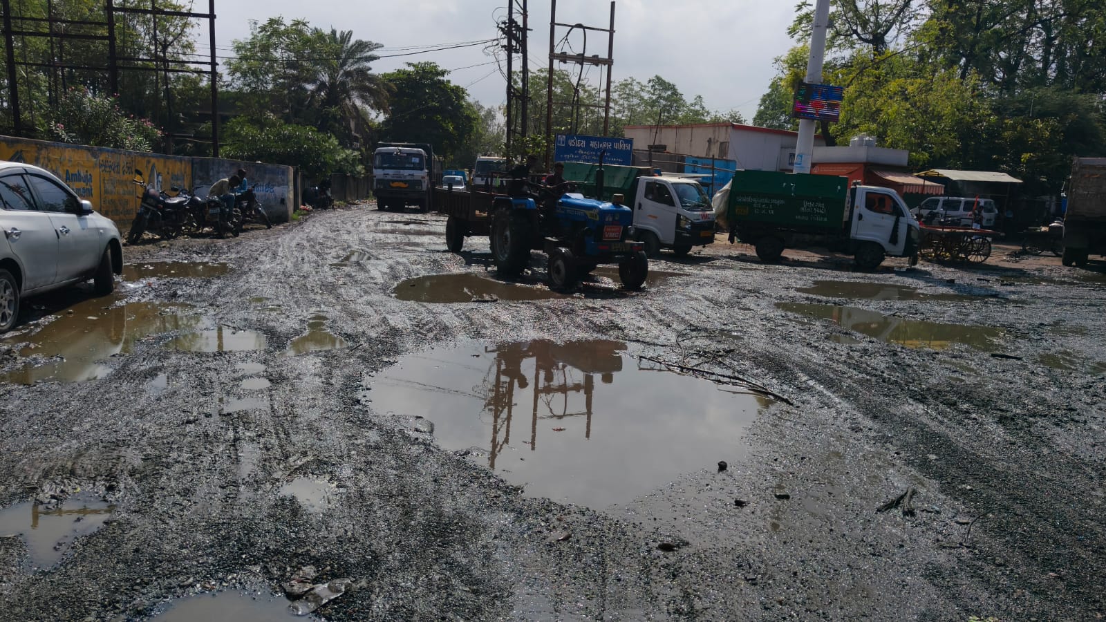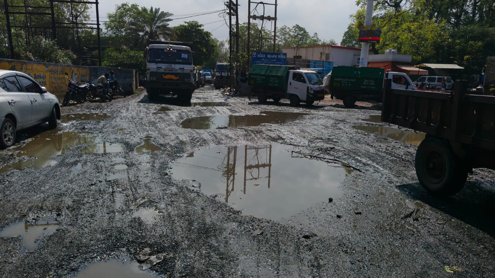શહેરના મુજમહુડા વિસ્તારમાં આવેલા સુએજ ટ્રીટમેન્ટ જવાના માર્ગના ખાડામાં ગંદા દુર્ગંધયુક્ત પાણીના ખાબોચિયાં