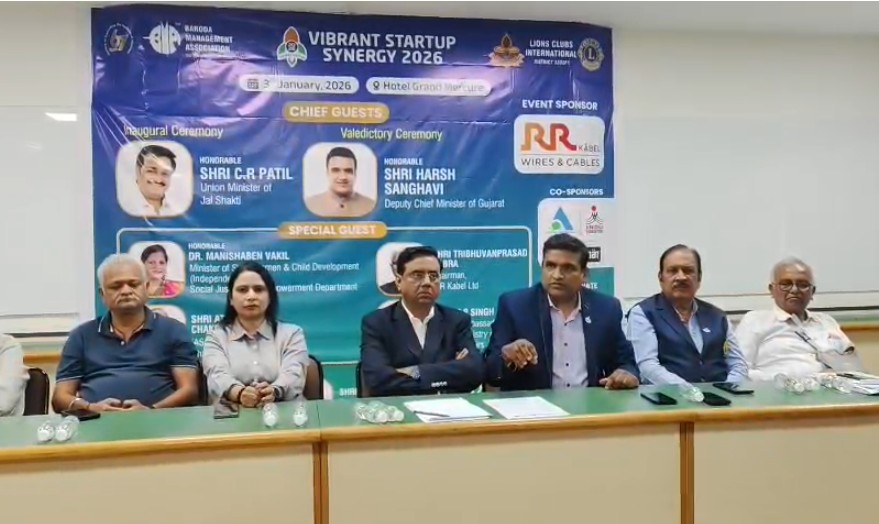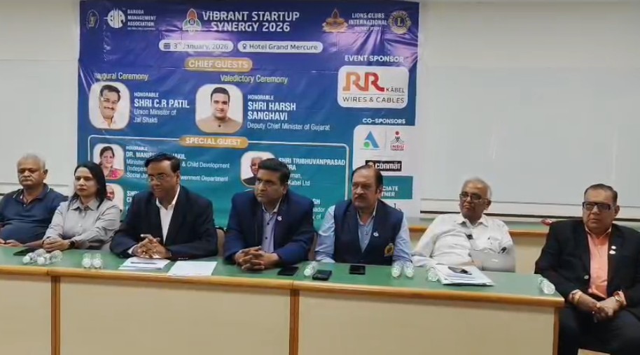 બરોડા મેનેજમેન્ટ એસોસિયેશન દ્વારા લાયન્સ ક્લબ ડિસ્ટ્રિક્ટ 3232 FIના સહયોગથી "વાઇબ્રન્ટ સ્ટાર્ટ-અપ સિનેર્જી 2026" વિચારપ્રેરક સ્ટાર્ટ-અપ કોક્લેવનું આયોજન કરવામાં આવ્યું.જેમાં બંને સંસ્થાના હોદ્દેદારો ઉપસ્થિત રહ્યા હતાં.
