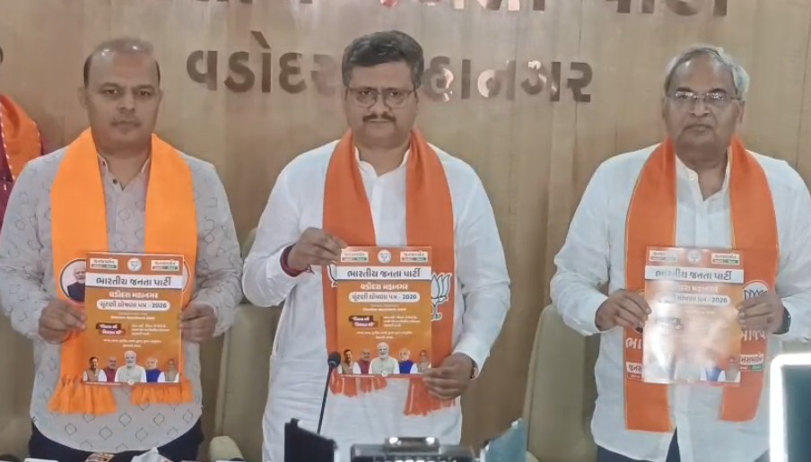 આગામી 26મીએ યોજાનાર સ્થાનિક સ્વરાજ્યની ચૂંટણીમાં વડોદરા મહાનગર બીજેપી દ્વારા 14 મુદાઓનું ચૂંટણી ઘોષણાપત્ર 2026 રજૂ કરવામાં આવ્યું