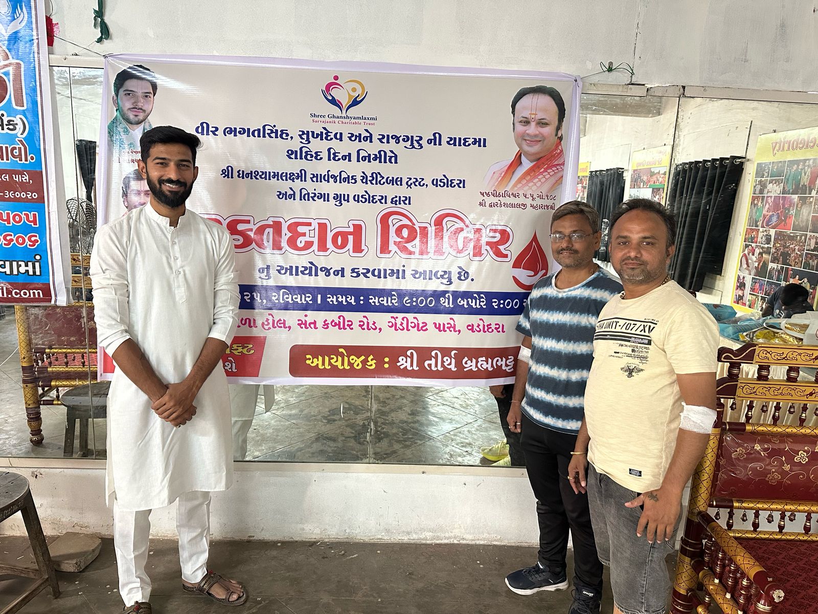 ઘનશ્યામ લક્ષ્મી સાર્વજનિક ચેરીટેબલ ટ્રસ્ટ તેમજ તિરંગા ગ્રુપના યુવા સાથી દ્વારા આજ રોજ રક્તદાન શિબિરનું આયોજન કમુ બાળા હોલ ખાતે કરવામાં આવ્યું હતું.