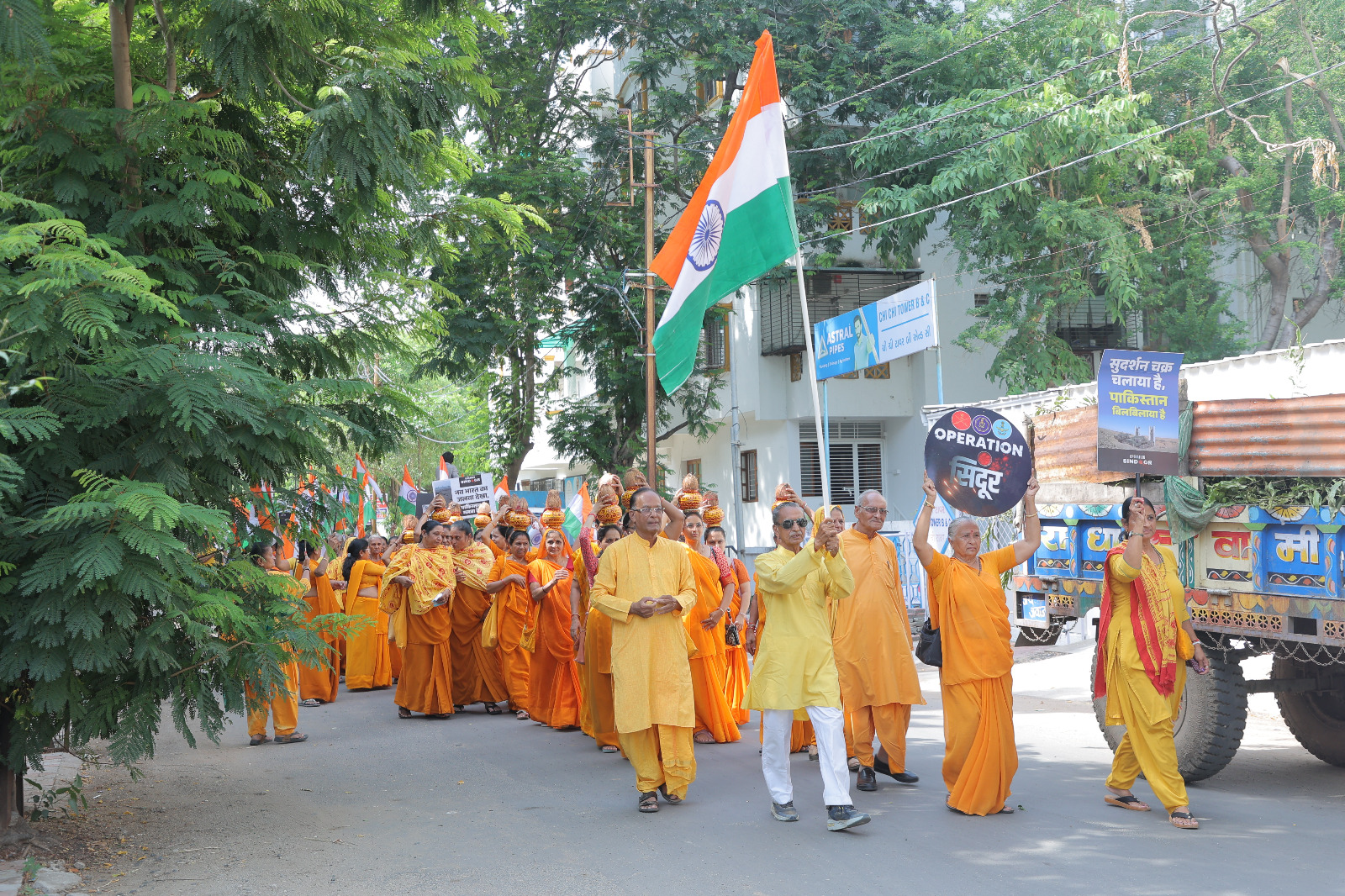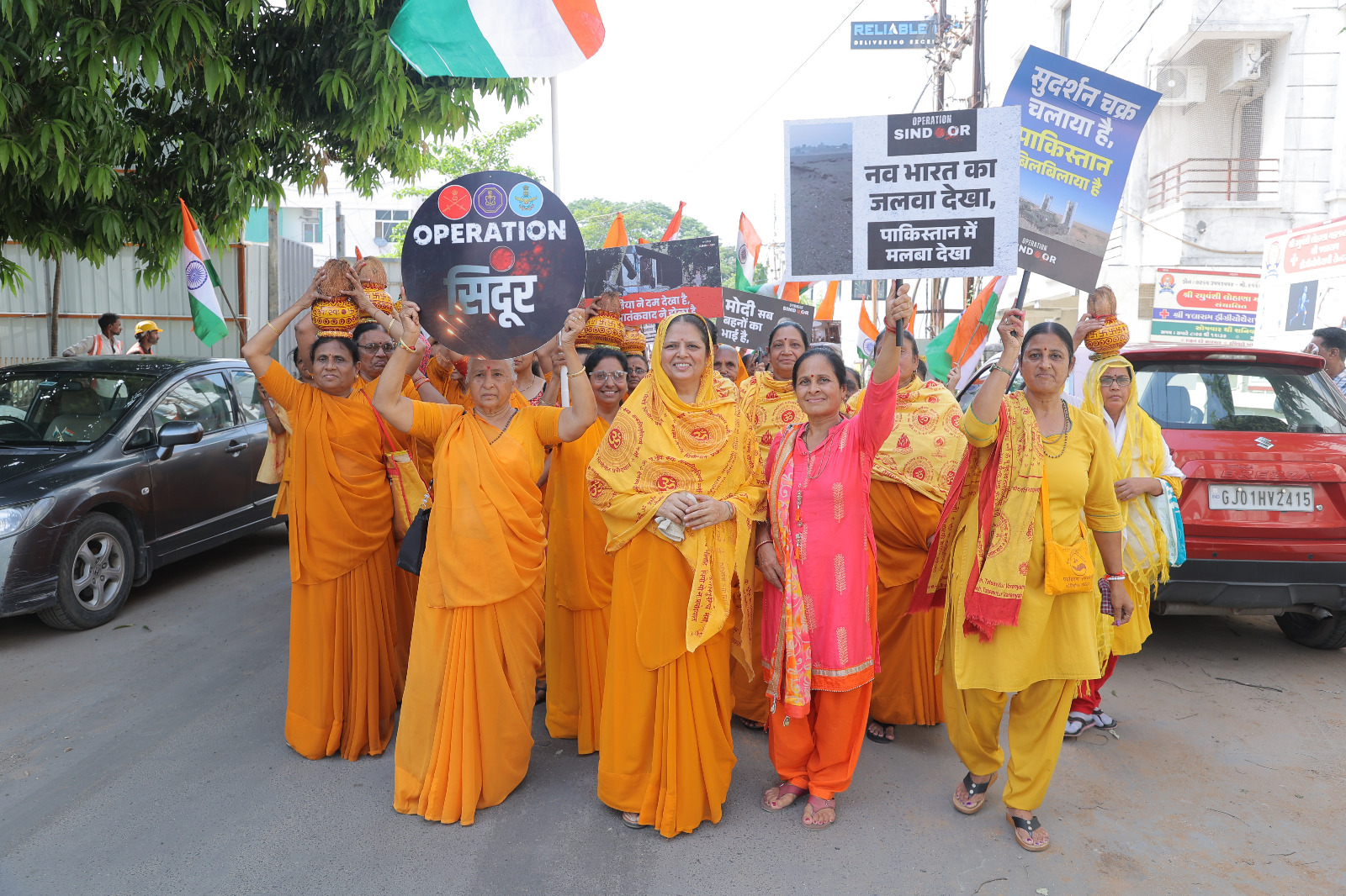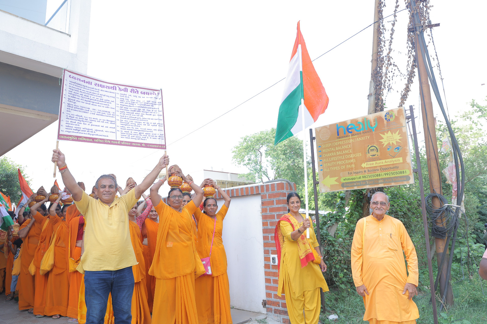 મંગલ કલશ સાથે વિરાટ તિરંગા યાત્રા નિકળી જેમાં હજારો ભઈઓ બેહનો યુવા ઓ જોડાયા હતા