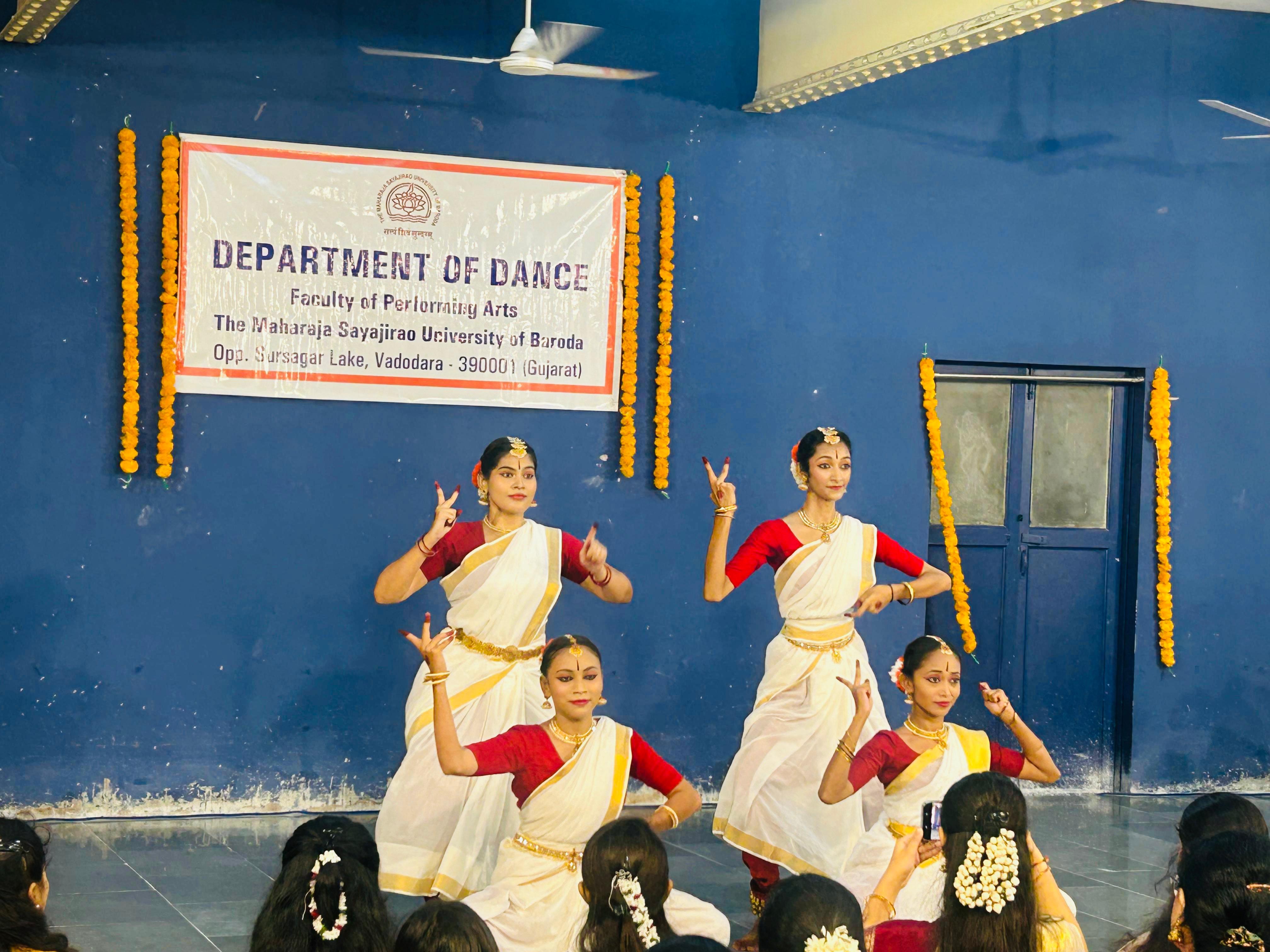 કાર્યક્રમમાં ડિપાર્ટમેન્ટના ભરતનાટ્યમ અને કથક શાખાના બેચલરથી લઈને માસ્ટર્સ સુધીના શિષ્યોએ ભવ્ય અને મનમોહક નૃત્યપ્રસ્તુતિઓ આપી.સર્વપ્રથમ કાર્યક્રમની શરૂઆત પરંપરાગત દીપ પ્રાગટ્યથી કરવામાં આવી. ત્યારબાદ ભરતનાટ્યમ વિભાગ દ્વારા “ગુરુ એવ સર્વમ,” “વિનાયક કૌતુવમ,” “ગુરુદત્તાત્રેય અભંગ” તથા “ગુરુ વંદના” જેવી રોચક રચનાઓ રજૂ કરવામાં આવી.