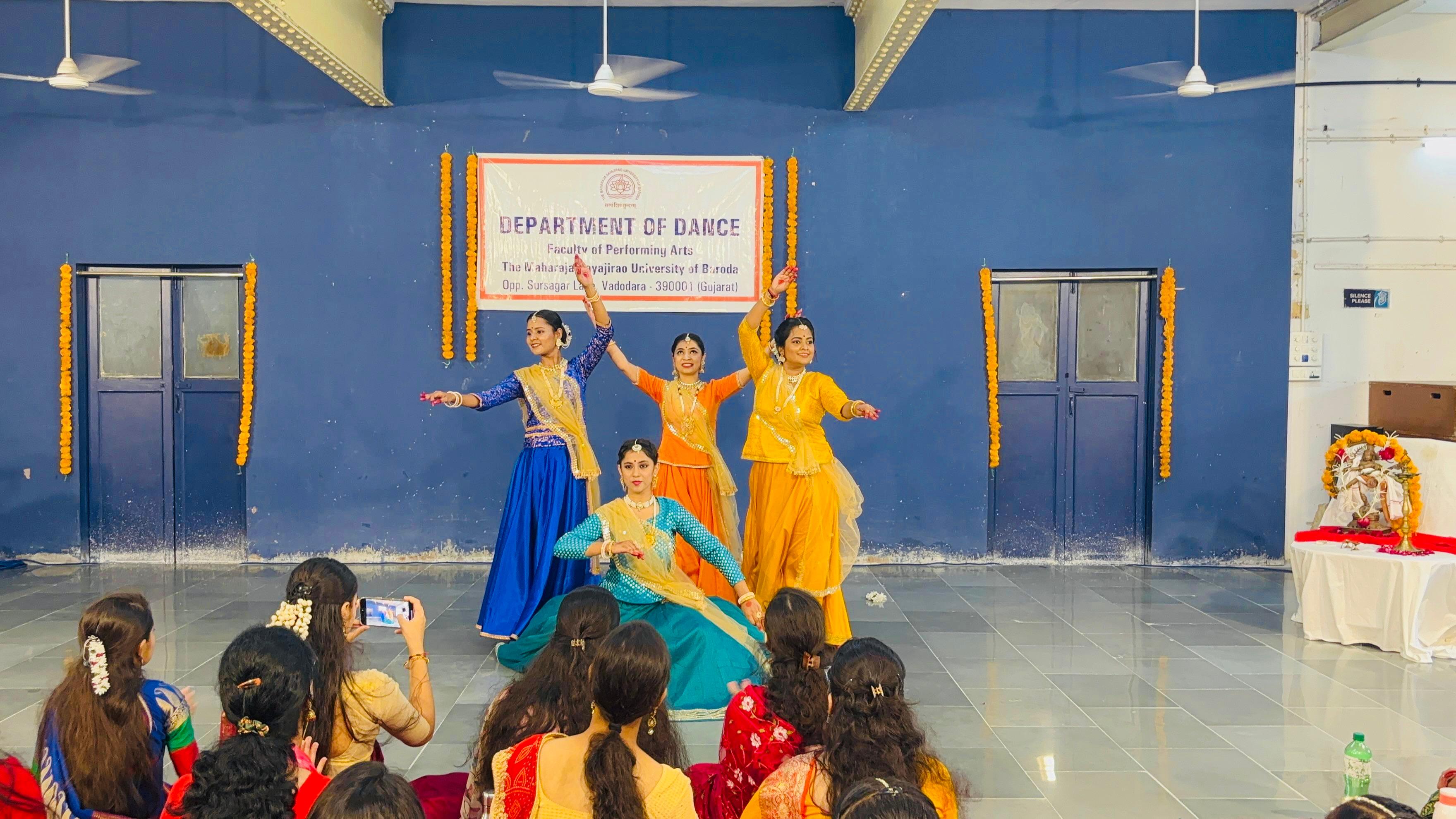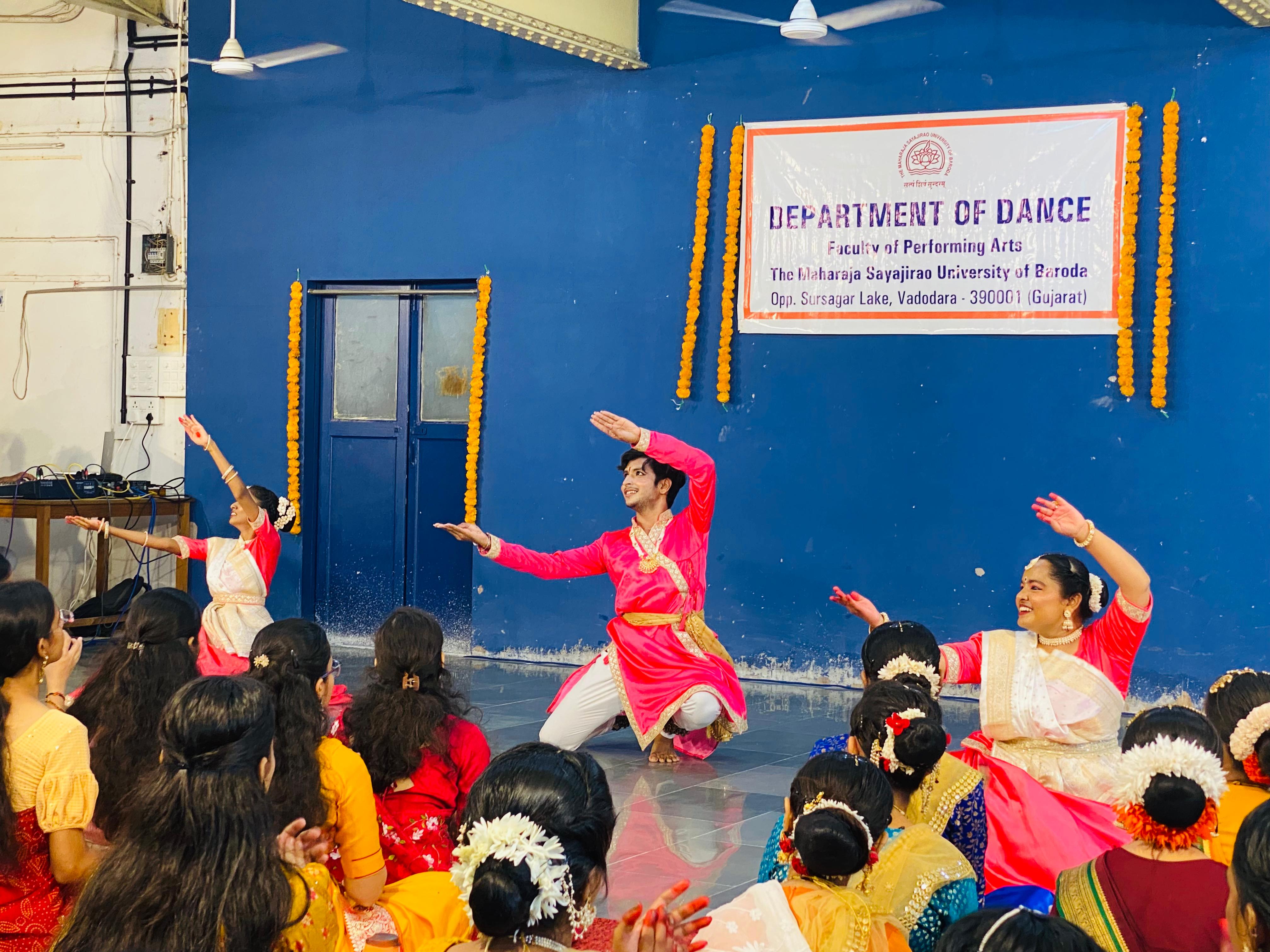 કથક વિભાગ તરફથી “ચતુરંગ,” “તરાના” અને “સરગમ” જેવી વિવિધ નૃત્ય કૃતીઓ કરવામાં આવી.આ અવસરે પર્ફોર્મિંગ આર્ટ્સ ફેકલ્ટીના માનનીય ડીન પ્રોફેસર ગૌરંગ ભાવસાર તેમજ વિભાગના વરિષ્ઠ શિક્ષકો ઉપસ્થિત રહ્યા.કાર્યક્રમ દરમિયાન દર્શકોની વિશાળ સંખ્યા ઉમટી પડતાં કાર્યક્રમ વધુ પ્રસંશનીય બની રહ્યો.