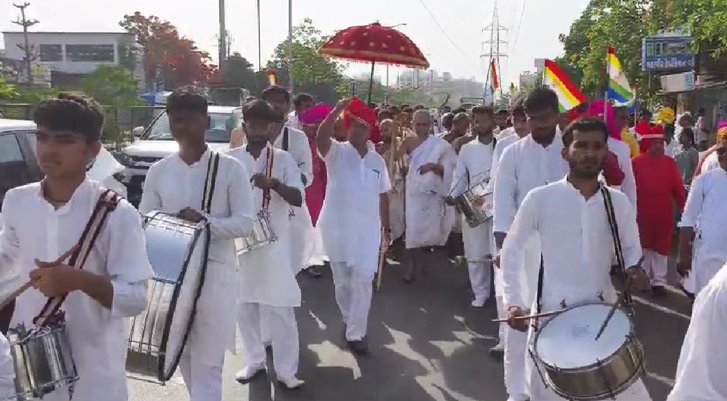 જૈન યુવાનો નું બનેલું સફેદ પોષાક માં સજ્જ જૈન એલર્ટ બેન્ડે ભારે આકર્ષણ ઉભું કર્યું હતું.