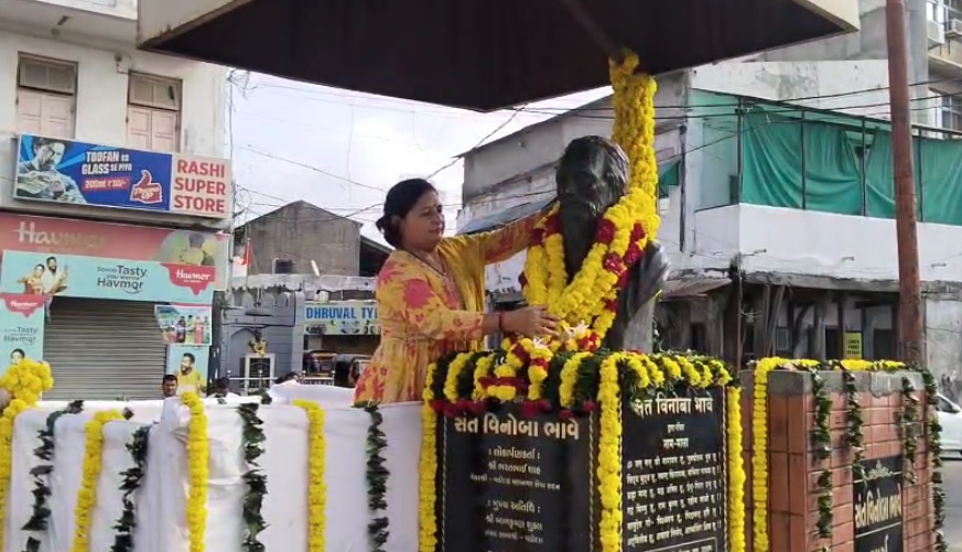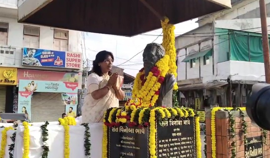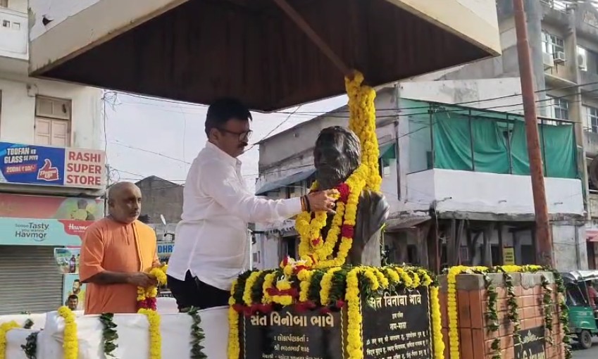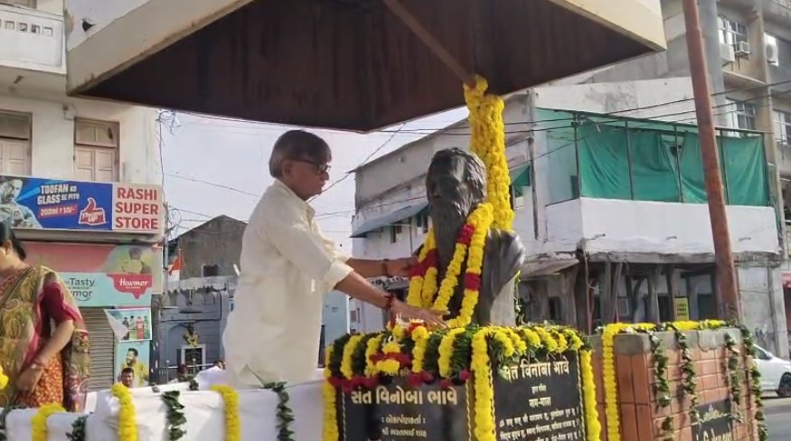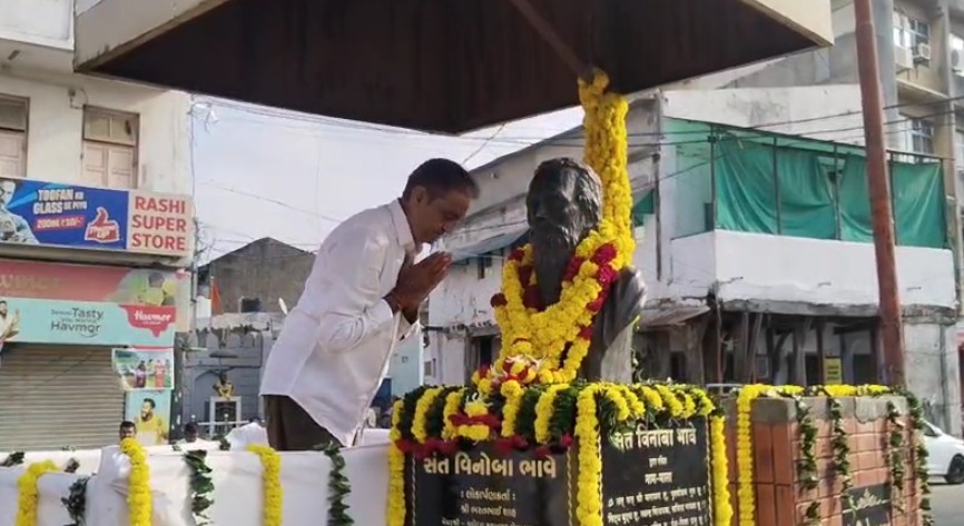 વિનોબાએ આ આંદોલન 18 એપ્રિલ 1951 ના રોજ તેલંગણાના નાલગોંડા જિલ્લામાંથી શરૂ કર્યું હતું. તેઓ જમીનના માલિકો પાસેથી દાન તરીકે જમીન લેતા હતા અને તે ગરીબ લોકોને ખેતી માટે આપતા હતા.વિનોબા આધ્યાત્મિક વિચાર ઘરાવતા વ્યક્તિ હતા. તેમણે અંતિમ દિવસો મહારાષ્ટ્રના વર્ધા જિલ્લાના પૌનારના એક આશ્રમમાં વિતાવ્યા હતા. 15 નવેમ્બર 1982 ના રોજ તેમનું નિધન થયું હતું. તેમને મરણોત્તર ભારત રત્નથી નવાજવામાં આવ્યા હતા. વિનોબા 1958 માં આંતરરાષ્ટ્રીય મેગ્સેસે એવોર્ડ મેળવનાર પ્રથમ વ્યક્તિ હતા. ત્યારે આજે સંત વિનોબા ભાવેની 130 મી જન્મજયંતિ નિમિતે પાલિકા દ્વારા પુષ્પાંજલિ અર્પણ કરવામાં આવી આ કાર્યકમ માં પાલિકાના હોદેદારો અને વિપક્ષ ના નેતા ચંદ્રકાંત શ્રીવાસ્તવ સાથે સ્થાનિક નગરસેવકો ઉપસ્થિત રહ્યા હતા