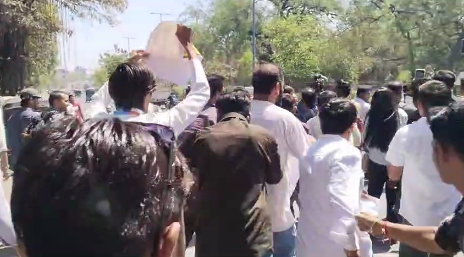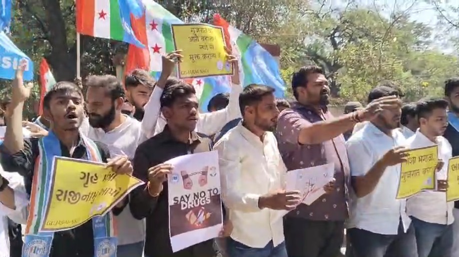 તેને ધ્યાનમાં લઇ આજરોજ વડોદરા NSUI દ્વારા ગુજરાત રાજ્યના ગૃહમંત્રી હર્ષ સંઘવી વિરુદ્ધ જાહેર રસ્તા પર નાશા બંધીના કાર્ડ્સ(Play cards)બતાવી ચક્કાજામ કરી વિરોધ પ્રદર્શન કરવામાં આવ્યો હતો.