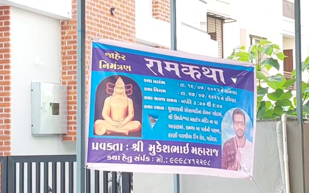 હરણી વારસીયા રીંગ રોડ પર આવેલ શુભલક્ષ્મી સોસાયટીમા રામકથાનું મુકેશ મહારાજના કંઠે રામકથાનું આયોજન કરેલ છે.