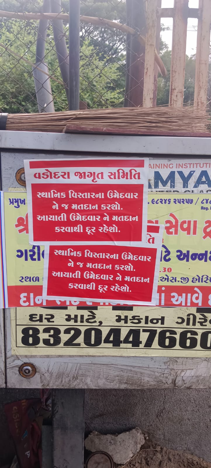 વડોદરા મહાનગરપાલિકાની ચૂંટણી જેમ જેમ નજીક આવી રહી છે, તેમ તેમ પ્રચારનાં પ્રકાર પણ બદલાઈ રહ્યા છે. શહેરમાં સોશિયલ મીડિયા વોર અને ઓડિયો વોર બાદ હવે પોસ્ટર વોર ચરમસીમાએ પહોંચી છે. માંજલપુર વિસ્તારમાં પણ ભાજપ વિરોધી પોસ્ટરો લાગતા રાજકીય ગલીયારોમાં ગરમાવો આવી ગયો છે.શહેરના માંજલપુર વિસ્તારમાં આવેલા અવધૂત ફાટક પાસે આજે વહેલી સવારે સ્થાનિક રહીશો અને રાહદારીઓએ ભાજપ વિરોધી લખાણવાળા અનેક પોસ્ટરો જોયા હતા. આ પોસ્ટરોમાં ભાજપના શાસન સામે રોષ પ્રગટ કરવામાં આવ્યો છે. મહત્વની વાત એ છે કે અત્યાર સુધીનાં પોસ્ટરોમાં માત્ર વિરોધ જોવા મળતો હતો, પરંતુ માંજલપુરમાં લાગેલા પોસ્ટરોમાં ભાજપનાં વિરોધની સાથે સાથે કોંગ્રેસનું ખુલ્લું સમર્થન પણ કરવામાં આવ્યું છે.અવધૂત ફાટક પાસે લાગેલા આ પોસ્ટરોમાં વિકાસનાં પોકળ વાયદાઓ અને સ્થાનિક પ્રશ્નોને લઈને શાસક પક્ષને ઘેરવામાં આવ્યો છે. “કાઉન્સિલર ગાયબ, કામ બંધ—શહેરને બચાવવા કોંગ્રેસને મત” જેવા સૂત્રો સાથે શહેર કોંગ્રેસ દ્વારા પોસ્ટરો લગાવવામાં આવ્યા હોવાનું જણાવાયું છે. કોંગ્રેસનાં સમર્થનવાળા આ પોસ્ટરોએ ભાજપના ગઢ ગણાતા માંજલપુરમાં સત્તાધારી પક્ષના ઉમેદવારોની ઊંઘ ઉડાડી દીધી છે.બીજા પોસ્ટરોમાં લખાયું છે કે “સ્થાનિક વિસ્તારનાં ઉમેદવારને જ મતદાન કરશો, આયાતી ઉમેદવારને મતદાન કરવાથી દૂર રહેજો.” વડોદરા જાગૃત સમિતિનાં નેજા હેઠળ આ પોસ્ટરો લગાવાયા હોવાનું કહેવાય છે. ચૂંટણીનાં ગણતરીના દિવસો બાકી છે ત્યારે આ પ્રકારના રાતોરાત લાગતા પોસ્ટરો મતદારોના માનસ પર મોટી અસર કરી શકે છે.