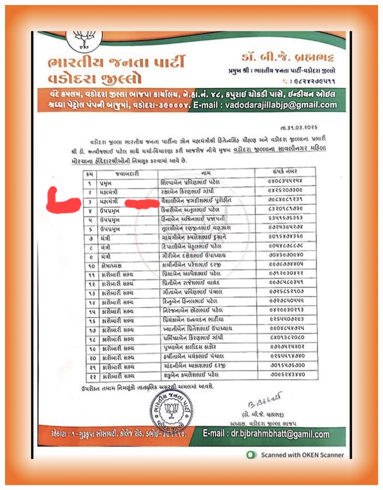 વૈશાલી બેનના રાજીનામા મુદ્દે રાજકીય ગરમાવો. શહેર ભાજપ પ્રમુખની સ્પષ્ટતા – રાજીનામું હજુ મળ્યું નથી