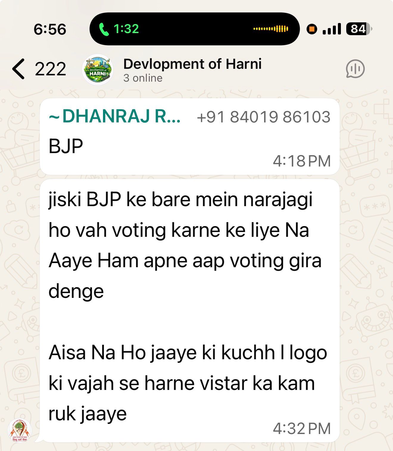 સોશિયલ મિડીયા પર ભાજપનો પ્રચાર કરતાં અથવા તો અંધ ભક્તો તરીકે ઓળખાતા કહેવાતા હિન્દુઓ દ્વારા મતદારને મતદાન ન કરવા અપીલ કરવામાં આવી રહી છે. શહેરના ભાજપના ગઢ ગણાતા એક વોર્ડમાં કોંગ્રેસનો પ્રભાવ હાલ વધારે લાગી રહ્યો છે. તેવા સમયે અંધ ભક્તો અને કહેવાતા હિન્દુ વાદીઓ દ્વારા મતદારોને ડરવવામાં આવી રહ્યા છે, ભાજપ હારશે તો વિકાસ નહીં થાયની વાતો કહેવામાં આવી રહી છે. એટલું જ નહીં ભાજપનો વિરોધ હોય તો મતદાન કરવા માટે જ અપીલ કરાઇ રહી છે.