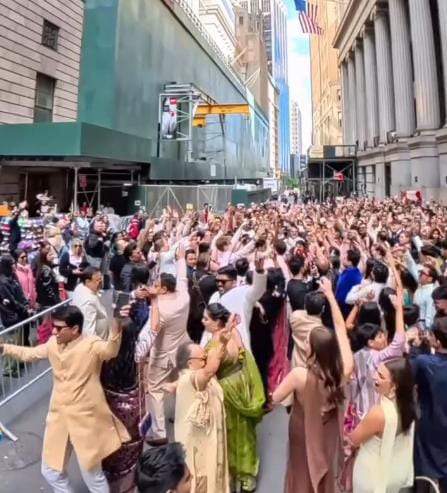 આ વીડિયોમાં ભારતીય સંસ્કૃતિના દર્શન થઈ રહ્યા હોવાનું લોકો સોશિયલ મીડિયામાં કહી રહ્યાં છે. આ વીડિયોની વાત કરવામાં આવે તો, અમેરિકામાં પણ ભારતીયો આપણા રીતિ-રિવાજ પ્રમાણે લગ્ન કરતા હોય છે. આ વાયરલ વીડિયોમાં પરંપરાગત પોશાક પહેરેલા સેંકડો લોકોનું એક મોટું જૂથ વોલ સ્ટ્રીટ (Wall Street, New York) પર ડીજેના તાલ પર નાચતા અને ગાતા જોવા મળે છે. દરેક વ્યક્તિ મસ્તીમાં ડૂબેલા જોવા મળે છે. એટલું જ નહીં પરંતુ બારાતીઓની ભીડને કારણે આખું વોલ સ્ટ્રીટ બંધ કરી દેવામાં આવ્યું છે. વીડિયો ખૂબ જ શેર થઈ રહ્યો છે.આ વીડિયો ન્યૂ યોર્કનો હોવાનું જાણવા મળ્યું છે. ન્યૂ યોર્કના પ્રતિસ્થિત રસ્તા પર ભારતીય લોકોએ લગ્નનો વરઘોડો કાઢ્યો હતો. આ વરઘોડામાં લોકો મન મુકીને નાચતા જોવા મળી રહ્યાં છે. ભારતીય પોશાક પહેરેલા ઘણા લોકો ડીજેના તાલ પર નાચતા અને મજા કરતા જોવા મળે છે. ભારતમાં પણ આવી રીતે જ લગ્ન કરવામાં આવતા હોય છે. મૂળ વાત એ છે કે, આપણાં લોકો ભલે વિશ્વના કોઈ પણ દેશમાં રહેતા હોય પરંતુ જ્યારે લગ્નની વાત આવે ત્યારે દેશી ઠાઠમાઠ સાથે કરવાનું વિચારે છે.