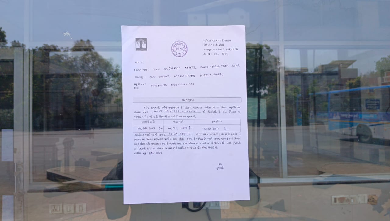 વડોદરા : શહેર મકરપુરા વિસ્તારમાં આવેલા મકરપુરા એસટી ડેપો ખાતે છેલ્લા ઘણા સમયથી વેરોનો ભરતા પાલિકાની ટીમ મકરપુરા ખાતે પહોંચ્યા હતી.