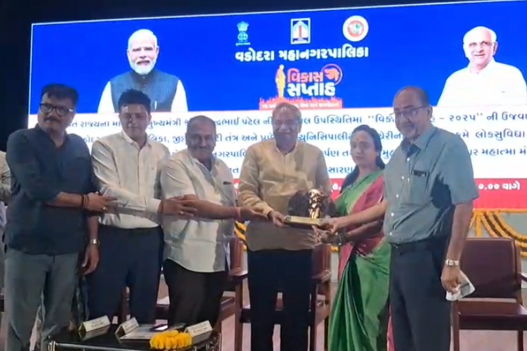 વિકાસ સપ્તાહની પુર્ણાહુતી પ્રસંગે વડોદરા મ.ન.પા. દ્વારા સુશાસન, સેવા, સમર્પણનાં 24 વર્ષની ઉજવણી હેઠળ રાજ્યના મુખ્યમંત્રી ભુપેન્દ્ર પટેલની વર્ચ્યુઅલ ઉપસ્થિતિમા 17.55 કરોડના વિકાસના કામોનું લોકાર્પણ અને ખાતમુહૂર્ત કરવામાં આવ્યું.