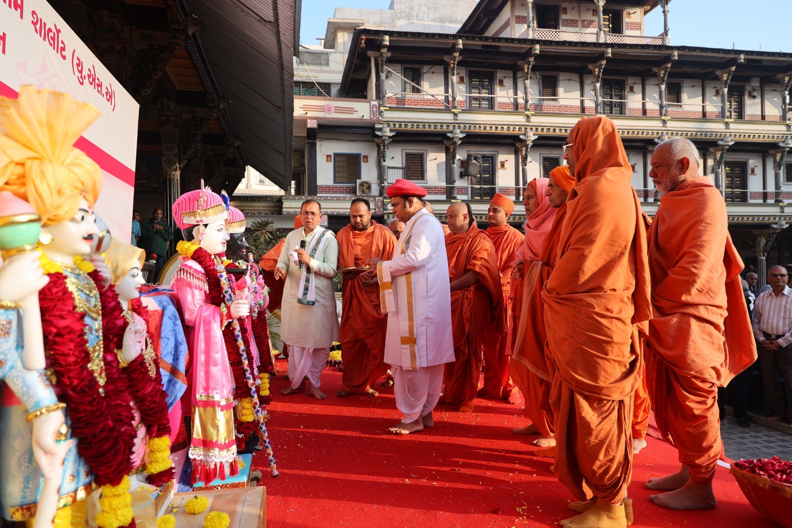 વડતાલ સંપ્રદાયના અગ્રણી સંત ગોવિંદસ્વામી (મેતપુરવાળા), પી.પી.સ્વામી સહિત જિલ્લા આરોગ્ય અધિકારી વી.એસ.ધ્રુવે જિલ્લા ટી.બી.અધિકારી દિનેશભાઇ બારોટ, ટી.બી.ના દર્દીઓ સહિત અન્ય સંતો, મહંતો તથા મોટી સંખ્યામાં પૂનમ ભરવા આવેલા હરિભક્તો ઉપસ્થિત રહ્યા હતા. અમેરિકાના નોર્થ કેરોલીના શાલલોર્ટ સીટીમાં નિર્માણાધિન ગઢપુર ધામ મંદિરમાં પ્રતિષ્ઠીત થનાર મૂર્તિઓનું આચાર્ય મહારાજના હસ્તે પૂજન કરાયું. નડિયાદ : સોમવારે પોષીપૂર્ણિમાના રોજ સવારે વડતાલ ગાદીના આચાર્ય રાકેશપ્રસાદજીના વરદ હસ્તે અમેરિકાના નોર્થ કેરોલીના શાલલોર્ટ સીટીમાં નિર્માણાધિન ગઢપુર ધામ મંદિરમાં પ્રતિષ્ઠીત થનાર મૂર્તિઓનું આચાર્ય મહારાજના હસ્તે પૂજન કરાયું હતું. આ પ્રસંગે સુચીત મંદિરના પ્રણેતા અને ગુરૂવર્ય ગોવિંદપ્રસાદ સ્વામી (જલગાંવ વાળા), વડતાલ ટ્રસ્ટી બોર્ડના ચેરમેન દેવપ્રકાશસ્વામી, મુખ્ય કોઠારી ડો.સંતવલ્લભદાસજી સ્વામી, બાપુસ્વામી, હરિઓમસ્વામી, કોઠારી પી.પી.સ્વામી (રામપુરા-સુરત), શા.ધર્મનંદનસ્વામી (ખંભાત), શા.હરિચરણદાસજી (યુએસએ) સહિતના સંતો તથા ગઢપૂર મંદિરના ટ્રસ્ટીઓ રમેશભાઇ ધાનાણી, વિનોદભાઇ પટેલ, દુલાભાઇ મેદપરા ઉપરાંત યુવા હરિભક્તો નીલકંઠ તથા ઋશન વગેરે ઉપસ્થિત રહી પૂજાવિધિમાં જોડાય હતા. યુએસએ શાર્લોટ ખાતે પ્રતિષ્ઠીત થનાર ગોપીનાથજી મહારાજ, રાધિકાજી, હરિકૃષ્ણ મહારાજ, રણછોડરાય, લક્ષ્મીનારાયણદેવ તથા સિધ્ધેશ્વર મહાદેવ – પાર્વતીજીની મૂર્તિઓ જયપુર ખાતે તૈયાર કરવામાં આવી હતી. જેનું પૂજન વડતાલ ગઢપૂર તથા જુનાગઢ ખાતે થયા બાદ ઉક્ત મૂર્તિઓ દરિયાઇ માર્ગે શાર્લોટ સીટી યુએસએ પહોંચાડાશે. સમગ્ર પૂજન વ્યવસ્થા મૂનીવલ્લભસ્વામી તથા શ્યામસ્વામીએ કરી હતી.