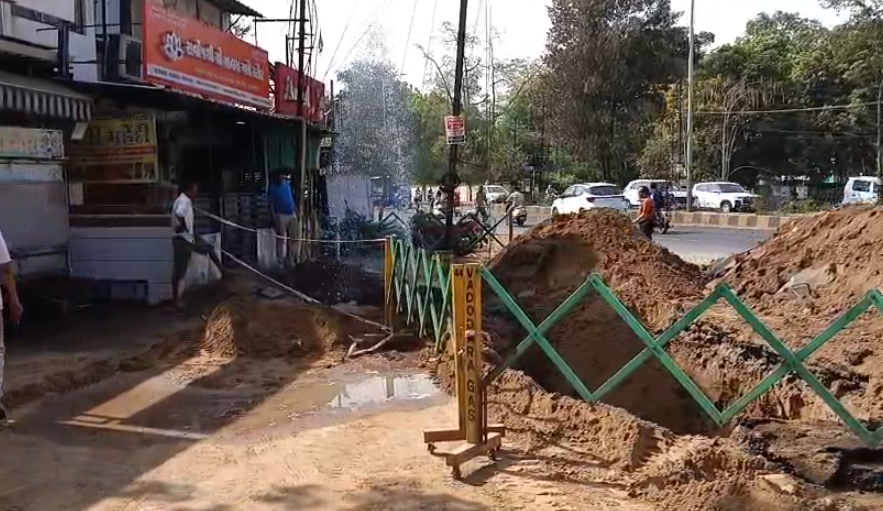 વડોદરા શહેર માંજલપુર સ્પદન સર્કલ પાસે પહેલા 4 થી વધુ દુકાનોમાં આગ લાગી હતી ત્યાં જ ફરી વખત પાલિકાની બેદરકારીના કારણે પાણીના ફુવારા ઉડ્યા